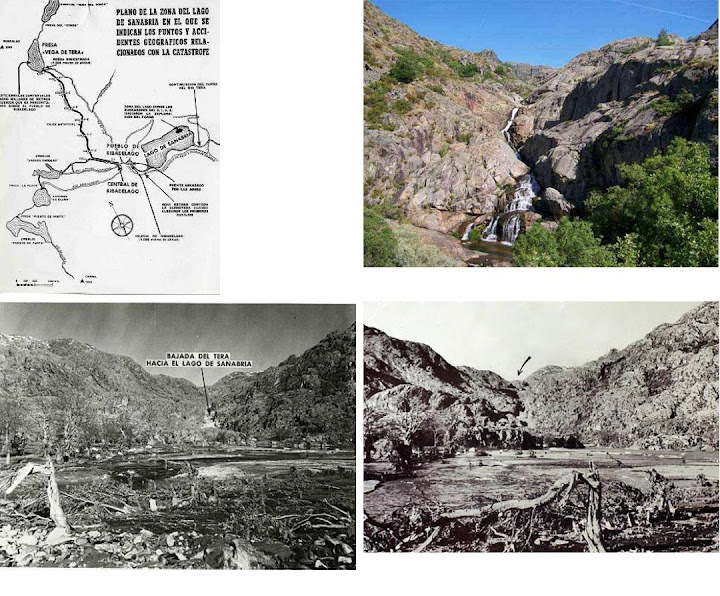 Por la misma época se construyó otra presa en la misma zona, Puente Porto (http://foros.embalses.net/showthread...0361#post10361) y con el mismo sistema, pero con una capacidad que triplicaba a la de Vega de Tera, de ahí el gran miedo que se tenía en la zona después de la tragedia. Ya que de reventar esta presa, volvería a afectar al mismo poblado, esta vez por el río Segundera. Aunque en aquella época obligaron a ala hidroeléctrica a rebajar su capacidad y a cubrir con escollera el trasdós del muro de la presa.